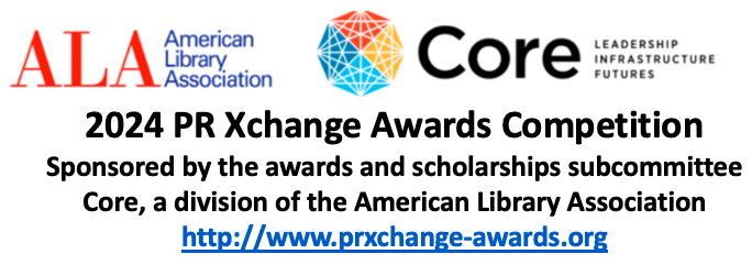 The 2024 PR Xchange Awards Competition recognizes the very best promotional materials produced by libraries in the past year. The PR Xchange Awards Competition is sponsored by Core, a division of the American Library Association (ALA). The PR Xchange Awards Competition is overseen by the PR Xchange Committee.